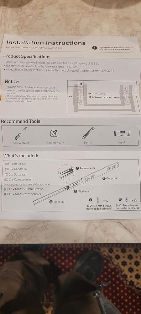 The Hitess 14-inch drawer slides are solid and feel heavy duty, with smooth ball-bearing action that makes opening and closing drawers effortless. The soft-close mechanism works very well, preventing any slamming, and the slides feel sturdy even under a moderately loaded drawer. Installation was straightforward, and the included screws were sufficient for most cabinet setups.I especially appreciated the attention to detail in the mounting holes, which made aligning the slides easier than expected. The finish is clean with no sharp edges, and the full-extension design lets you access the entire drawer space.The only small downside is that the slides don’t list a weight capacity, so for very heavy drawers you might need to double-check. Overall, these are high-quality slides at a very reasonable price, and I’d use them again for future projects.