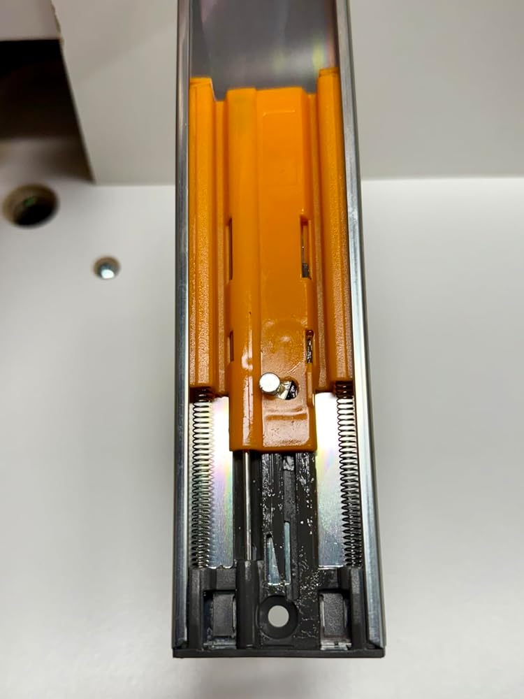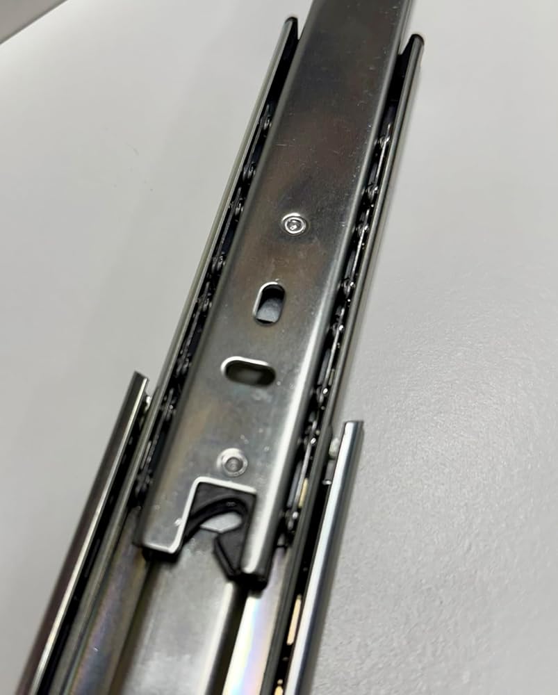• 【Superior Material】Crafted from 1.4mm cold-rolled steel (thicker than standard 1.2mm alternatives) with zinc-nickel alloy coating and anti-static treatment. Resists oxidation, rust, and wear, our self close drawer slides ensure long-lasting performance under heavy use. Features a metal buffer with protective plastic casing for added durability.